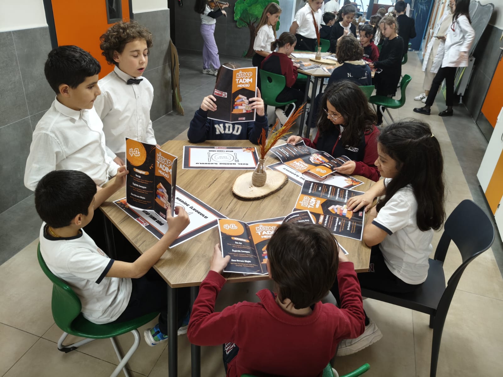 4. sınıf öğrencilerimizle gerçekleştirdiğimiz “Kitap Tadım Günü” etkinliğimiz büyük bir coşku ve heyecanla gerçekleşti. Öğrencilerimiz, seçtikleri kitapları hem üç boyutlu maketlerle hem de kitap kahramanlarına uygun kostümlerle canlandırarak büyük bir emekle tanıttılar. Etkinlik boyunca öğrenciler, kitapların dünyasını hayal güçleriyle birleştirerek kendilerini ifade etme fırsatı buldular. Etkinliğimizi ziyaret eden okul idarecilerimiz, öğretmenlerimiz ve öğrencilerimiz çalışmaları ilgiyle incelediler.
